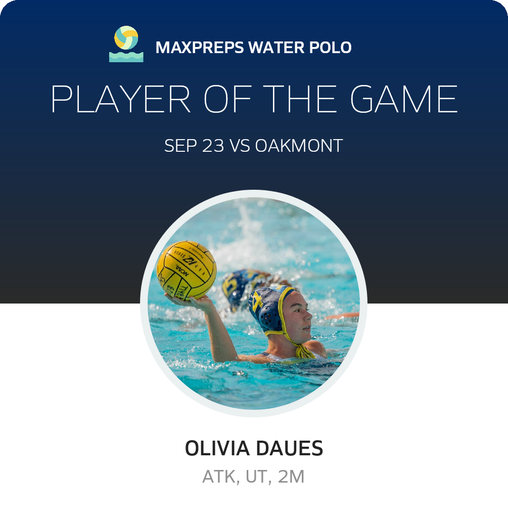 Congratulations to #4 Olivia Daues for being selected the River City Girls Water Polo Player of the Game.