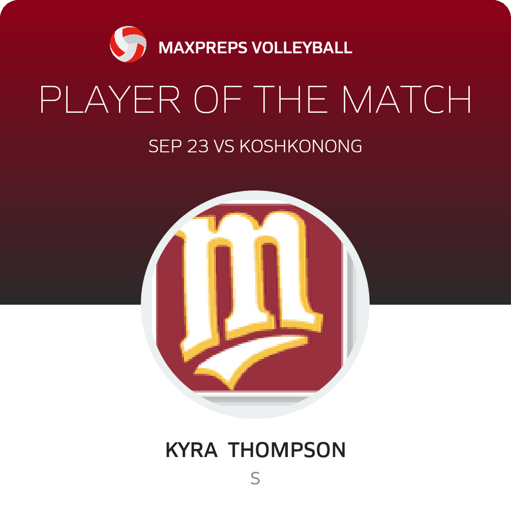 Congratulations to #8 Kyra Thompson for being selected the Mansfield Volleyball Player of the Match.