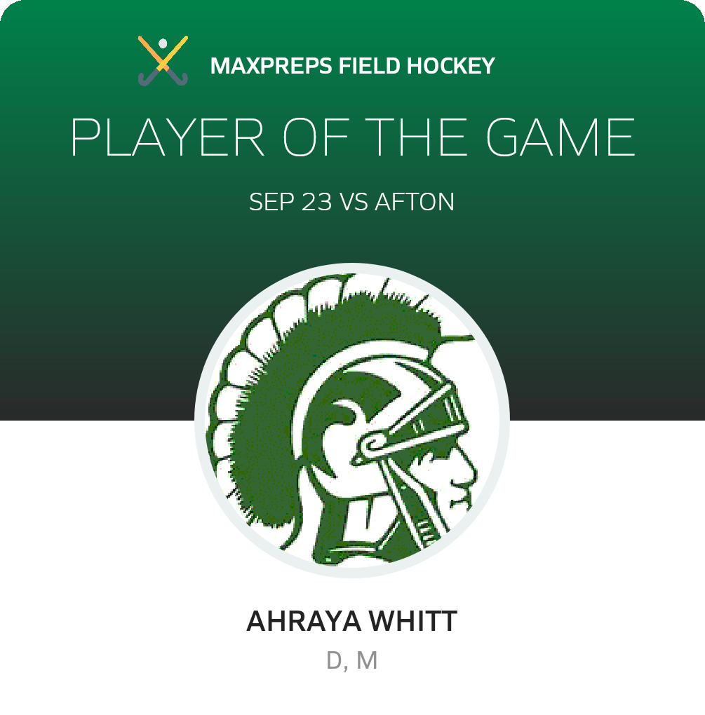 Congratulations to #3 Ahraya Whitt for being selected the Greene Field Hockey Player of the Game.