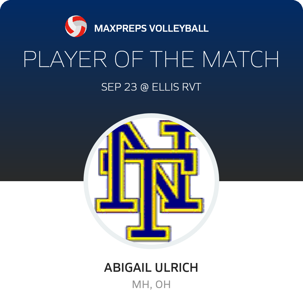 Congratulations to #24 Abigail Ulrich for being selected the Norwich RVT Volleyball Player of the Match.