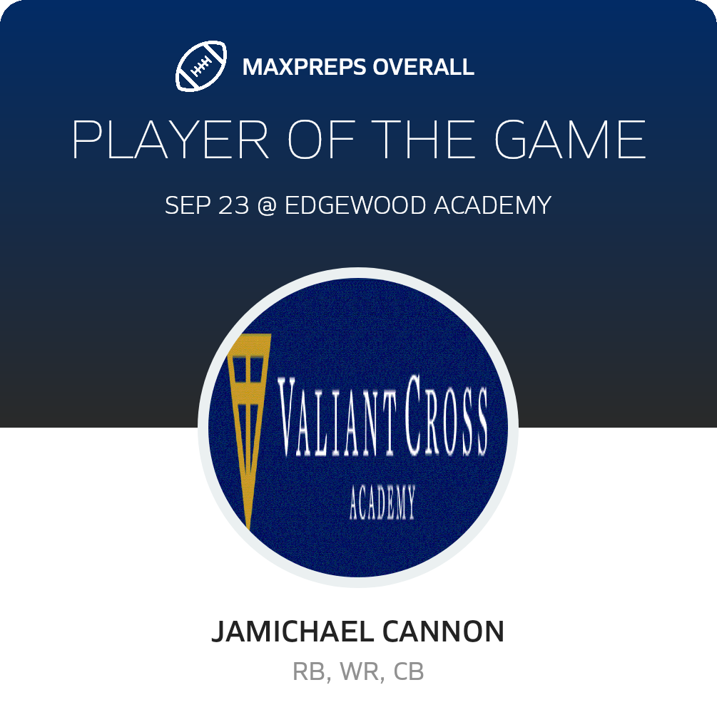 The Edgewood Academy (Elmore, AL) JV football team lost Tuesday's away non-conference game against Valiant Cross Academy (Montgomery, AL) by a score of 20-16.