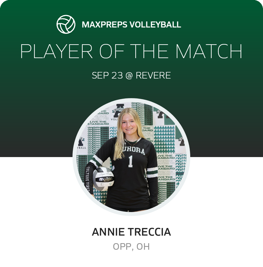 September 23, 2025: Richfield, OH 44286 The Aurora Greenmen topped the host Revere Minutemen volleyball squad by a final score of 3-1 in Tuesday's league game.