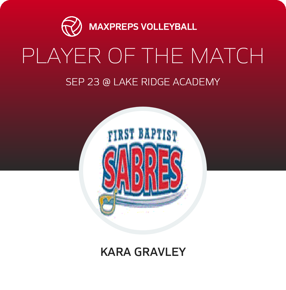 With the win, First Baptist Christian improves its record to 15-2 on the season. The Sabres travel to Andrews Osborne Academy (Willoughby, OH) to meet the Phoenix in a Lake Effect contest on Thursday, September 25. The Phoenix enter the contest with a record of 12-3. Andrews Osborne Academy won 3-0 in their recent league contest against St. Martin de Porres (Cleveland, OH)