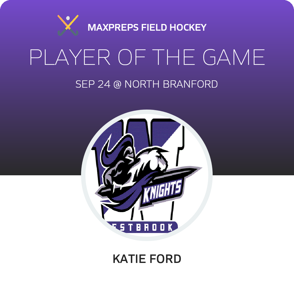Congratulations to #21 Katie Ford for being selected the Westbrook Field Hockey Player of the Game.