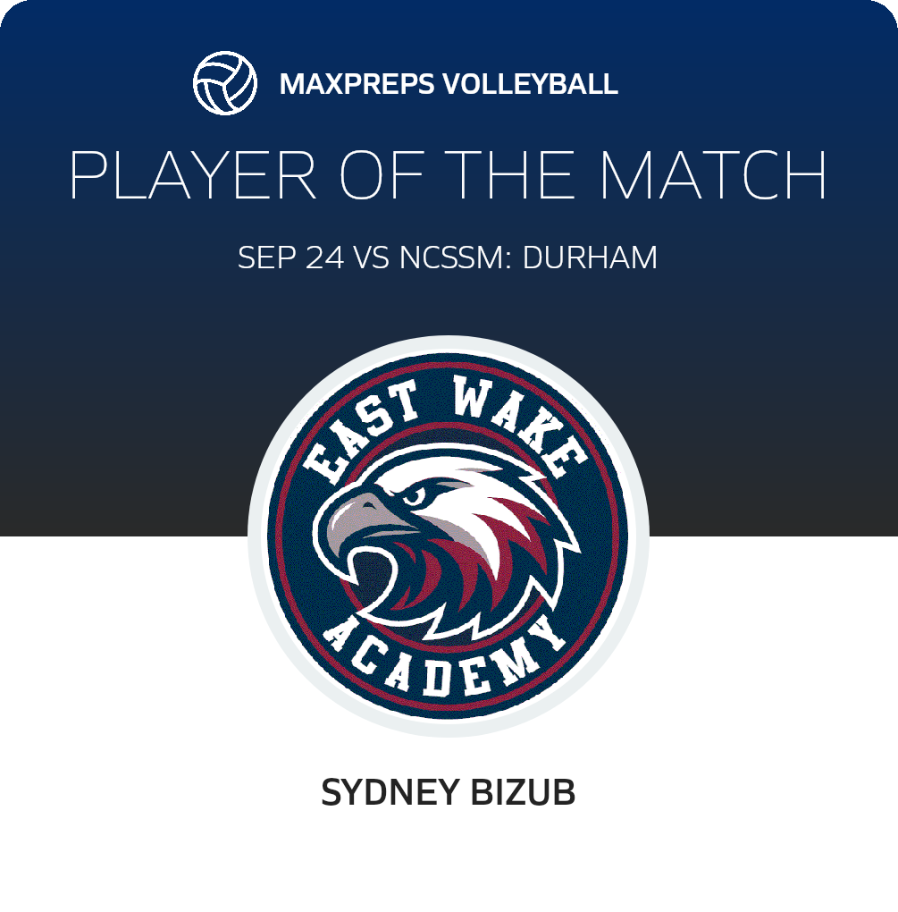 September 24, 2025: Zebulon, NC 27597 In Wednesday's league match, the East Wake Academy Eagles (Zebulon, NC) volleyball squad overcame the visiting NCSSM: Durham Unicorns (Durham, NC), by a count of 3-0.