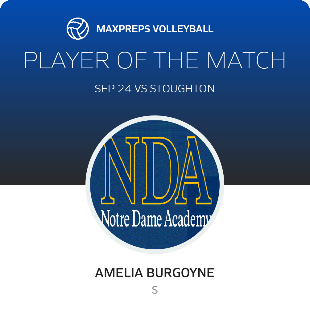 September 24, 2025: Hingham, MA 02043 Notre Dame Academy Cougars (Hingham, MA) followers left the game pleased Wednesday as they witnessed their volleyball team overcome the visiting Stoughton Black Knights (Stoughton, MA), 3-0 in a non-league challenge.