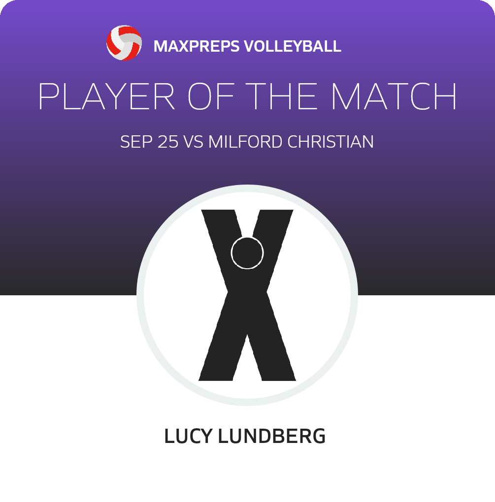 Congratulations to #6 Lucy Lundberg for being selected the Independent Baptist Academy Volleyball Player of the Match.
