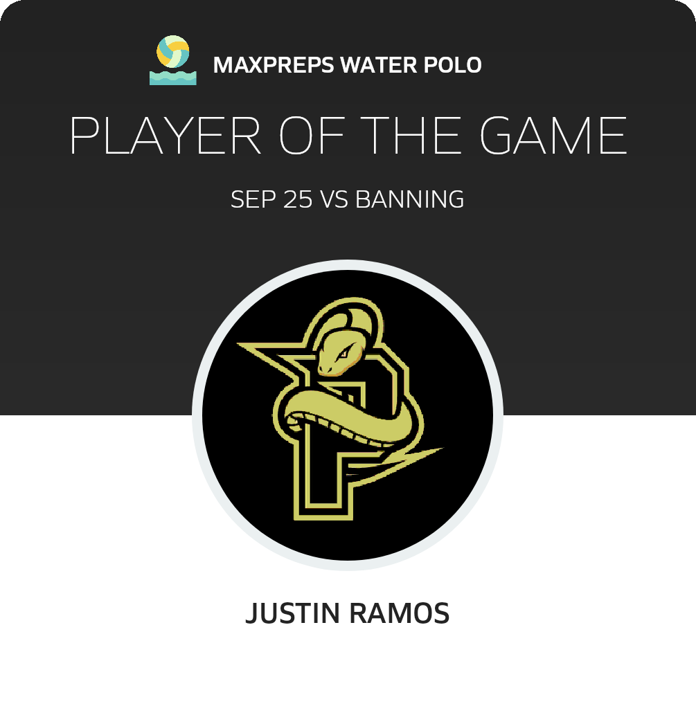 Congratulations to #7 Andres Morin for being selected the Banning Water Polo Player of the Game.