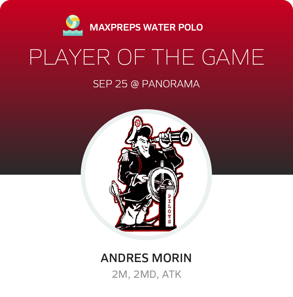 Congratulations to #9 Justin Ramos for being selected the Panorama Water Polo Player of the Game.