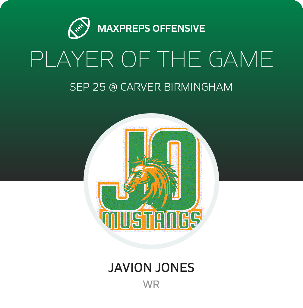 The Mustangs now own a 2-3 record. They play next when they host Parker for a 6A Region 5 bout on Friday, October 3. Jackson-Olin will encounter a Thundering Herd team coming off a 45-42 non-league loss to Hoover (Hoover, AL). The Thundering Herd record now stands at 4-2.