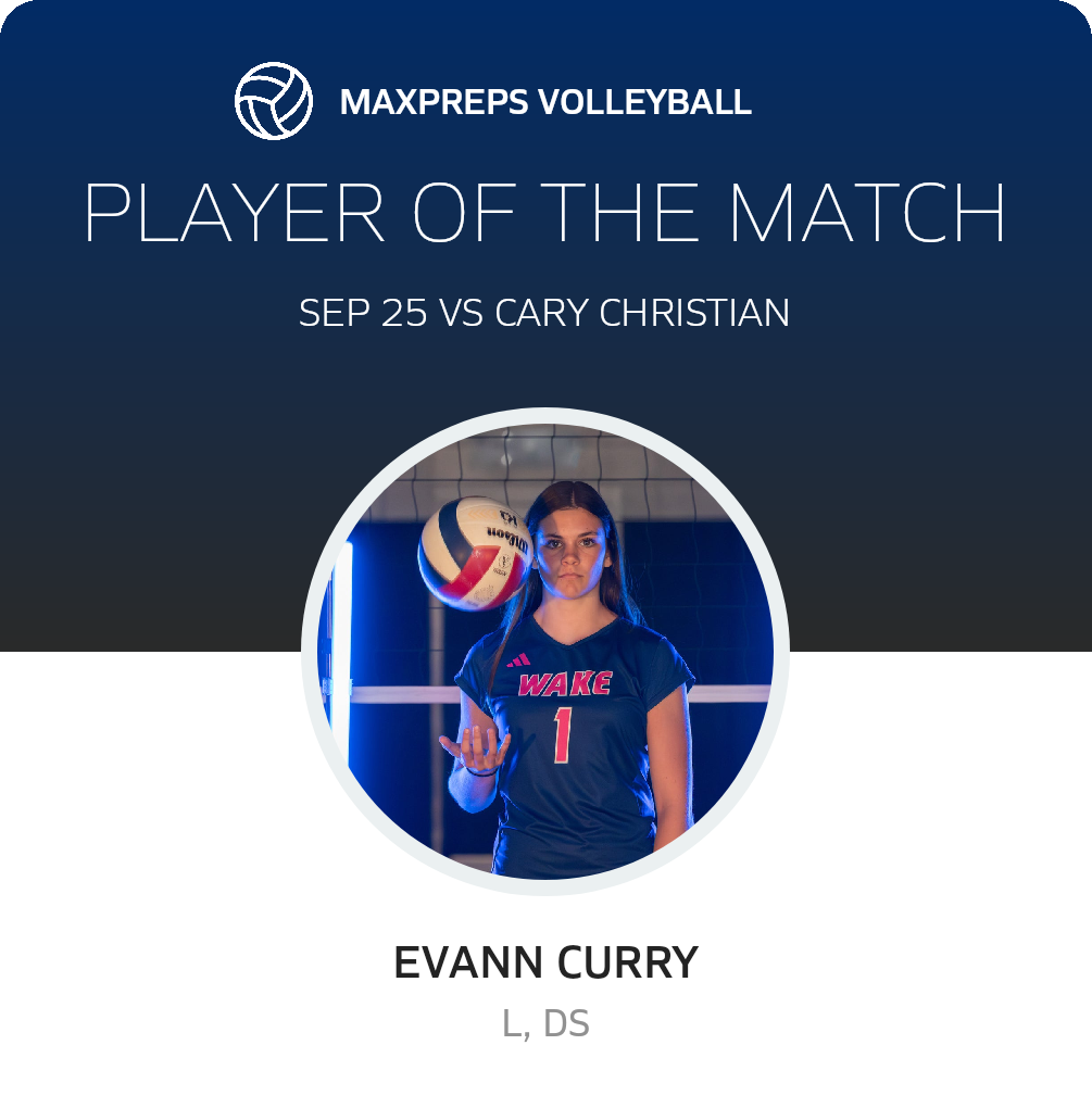 Congratulations to #6 Evann Curry for being selected the Wake Christian Academy Volleyball Player of the Match.