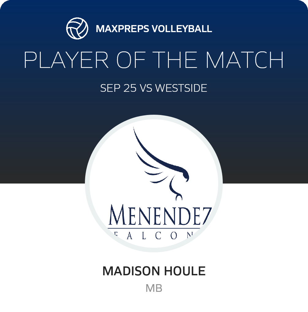 September 25, 2025: St. Augustine, FL 32086 The Menendez Falcons topped the visiting Westside Wolverines volleyball team by a margin of 3-0 in Thursday's league outing.