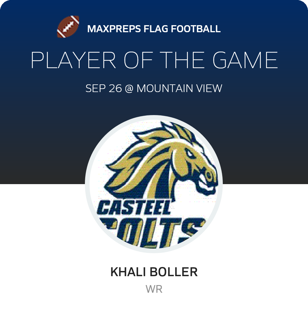 Congratulations to #8 Khali Boller for being selected the Casteel Girls Flag Football Player of the Game.