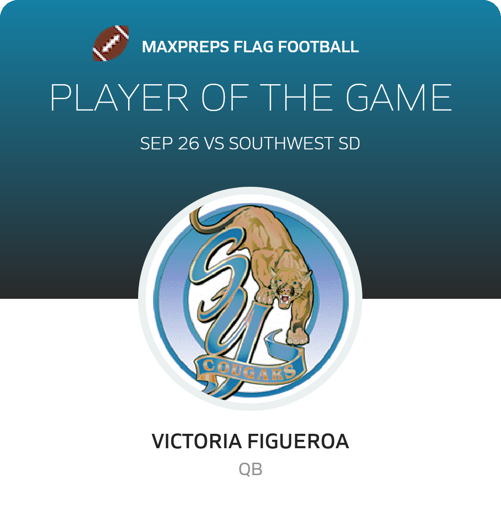 Congratulations to #30 Victoria Figueroa for being selected the San Ysidro Girls Flag Football Player of the Game.