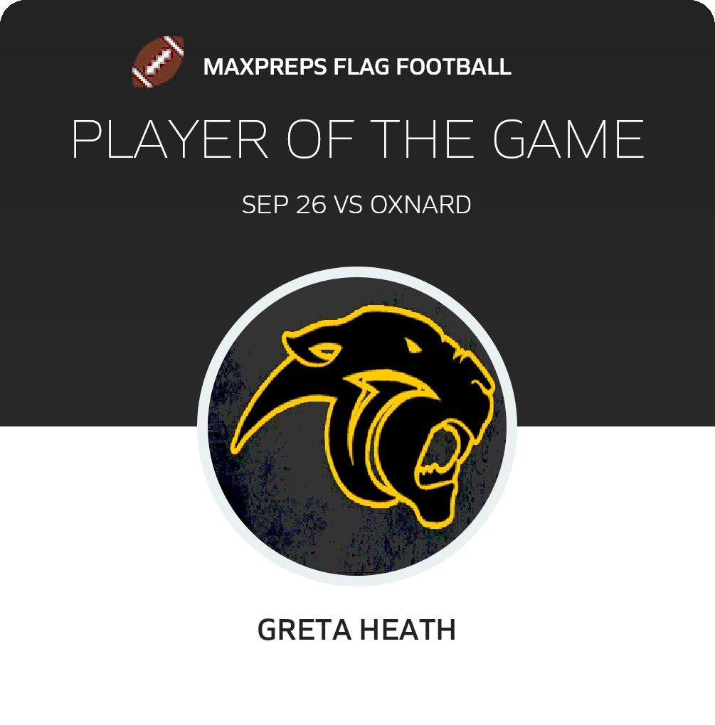 September 26, 2024: Newbury Park, CA 91320 In Thursday's non-league game, the Newbury Park Panthers (Newbury Park, CA) flag football team were victorious over the visiting Oxnard Yellowjackets (Oxnard, CA), by a score of 31-6.