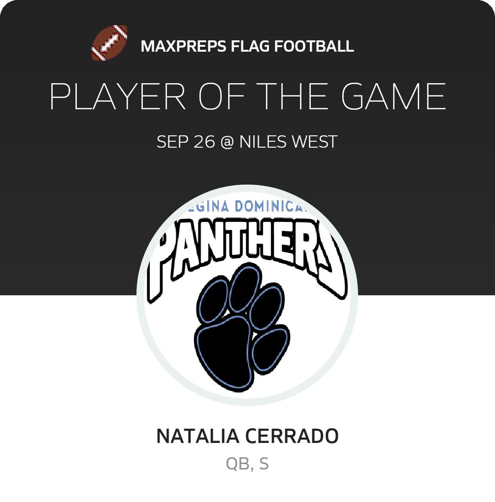 September 26, 2024: Skokie, IL 60077 The Niles West Wolves flag football squad scored 26 points and limited the visiting Regina Dominican Panthers to 20 in the Wolves non-league triumph on Thursday.