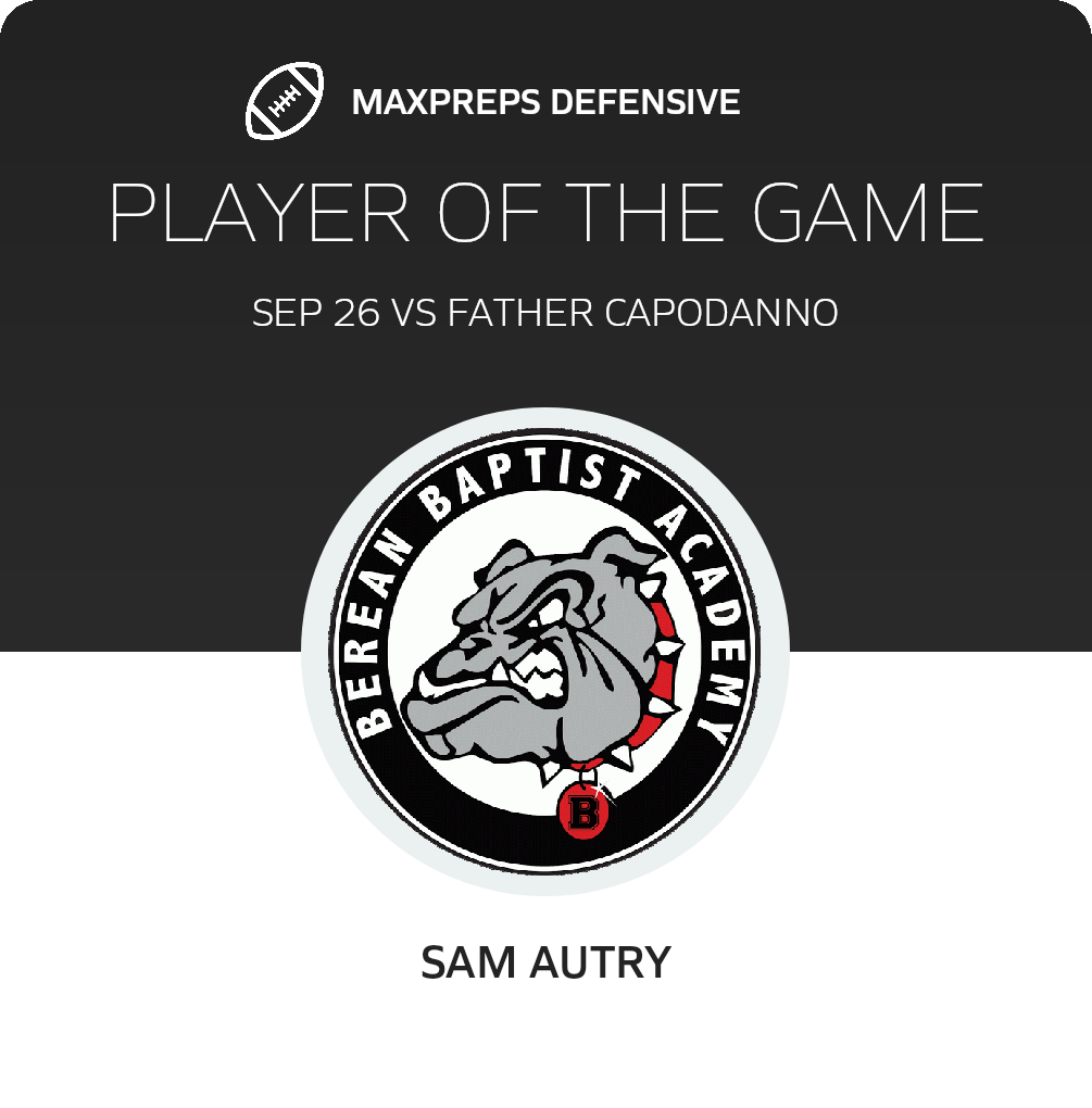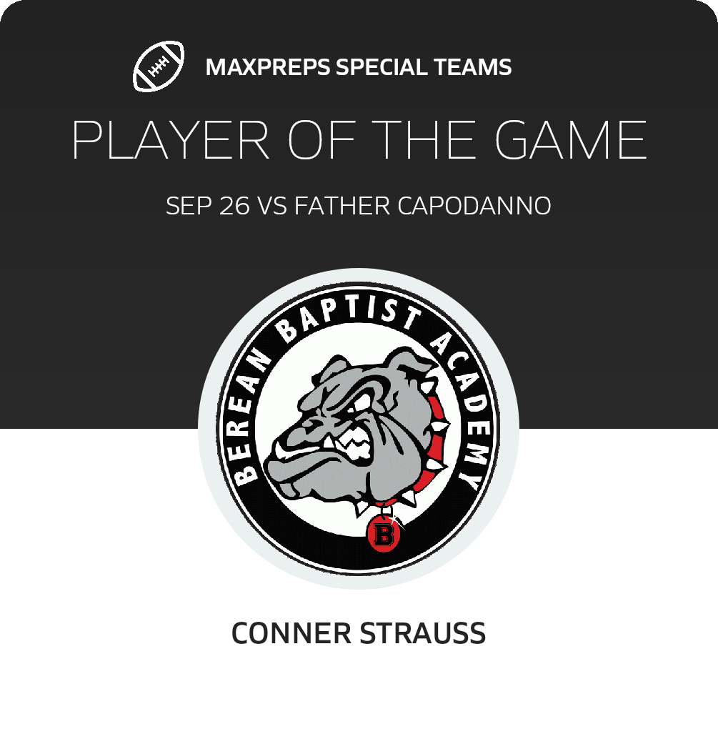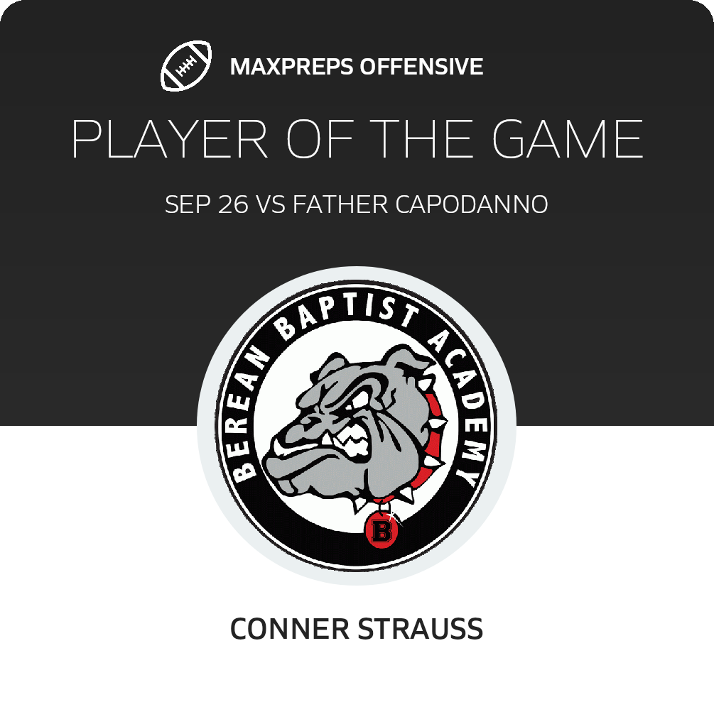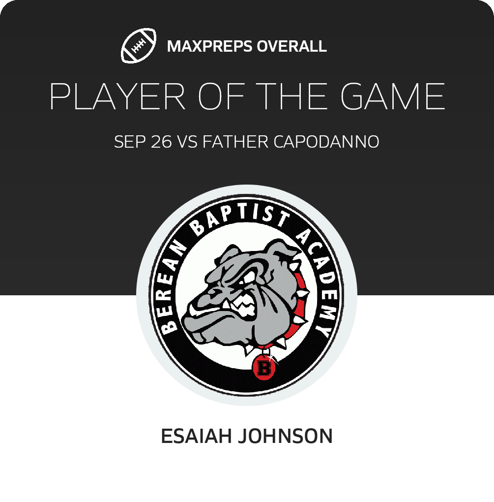September 26, 2025: Fayetteville, NC 28314 In Friday's league outing, the Father Capodanno Grunts (Vass, NC) football squad knocked off the host Berean Baptist Academy Bulldogs (Fayetteville, NC), by a margin of 34-20.