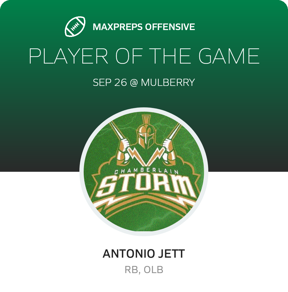 The Chamberlain Storm football squad scored 16 points and limited the host Mulberry Panthers to 0 in the Storm non-league triumph on Friday.