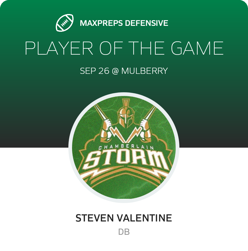 The Storm now sport a 4-1 record. They take the field next when they travel to Leto for a non-league test on Friday, October 3. Chamberlain will face a Falcons team coming off a 57-0 league loss to East Bay (Gibsonton, FL). The Falcons record now stands at 0-5.