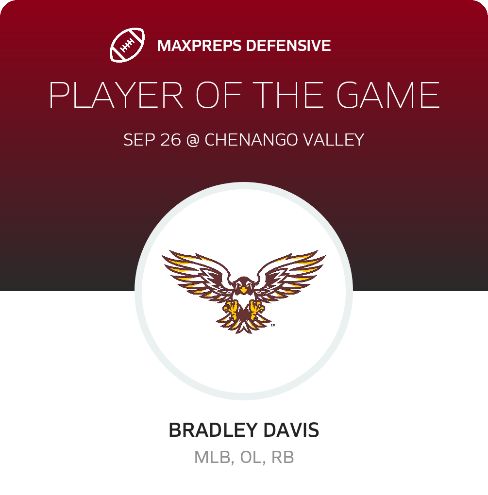 With the defeat, Chenango Valley drops to 1-3 on the season. The Warriors travel to Chenango Forks (Binghamton, NY) to face the Blue Devils in a non-league challenge on Saturday, October 4. The Blue Devils go into the challenge with a record of 5-0. Chenango Forks won 51-14 in their recent non-league challenge against Watkins Glen (Watkins Glen, NY)