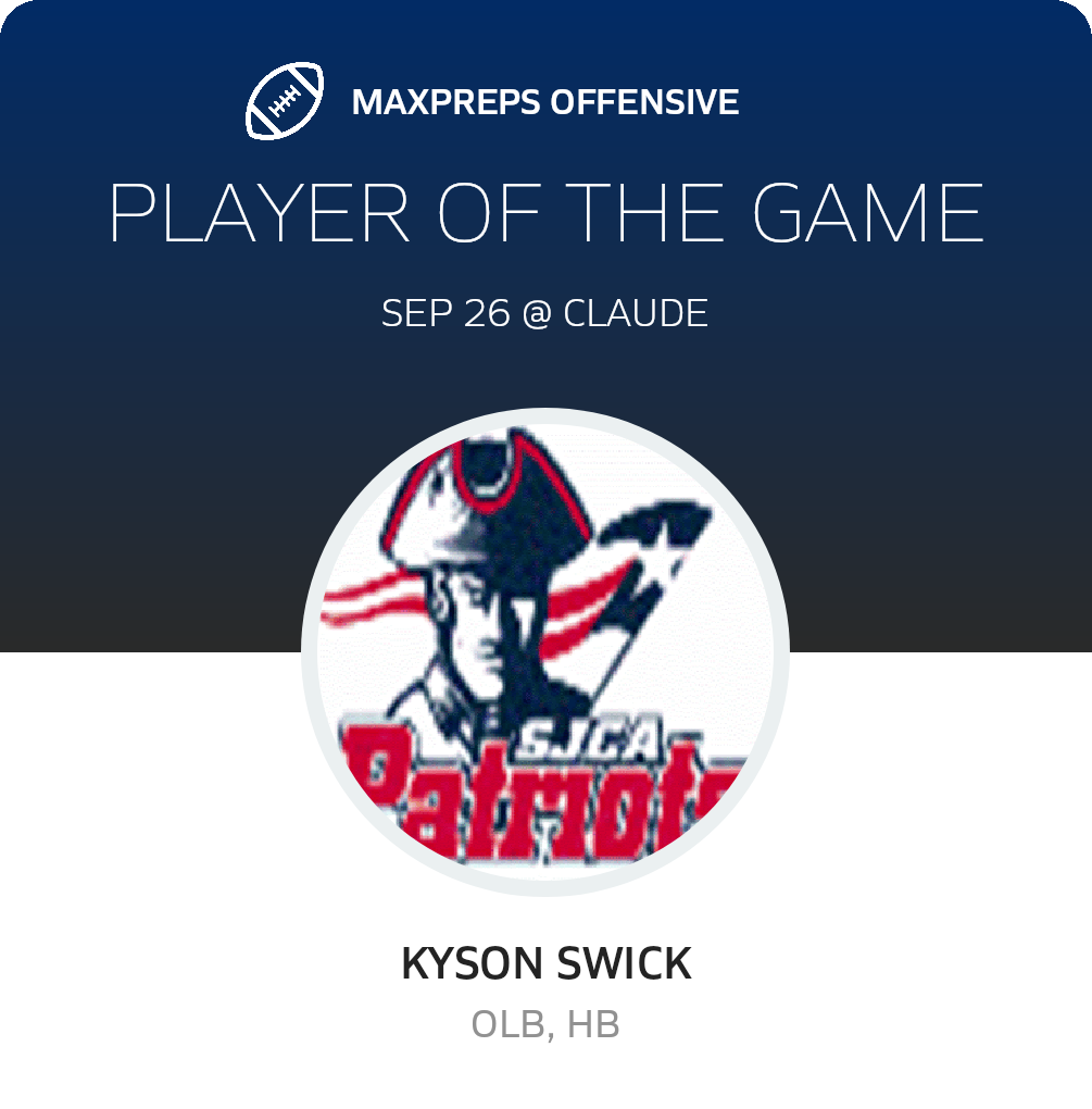 September 26, 2025: Claude, TX 79019 The San Jacinto Christian Academy Patriots football team (Amarillo, TX), was crushed 54-6 in Friday's non-league battle with the host Claude Mustangs (Claude, TX)