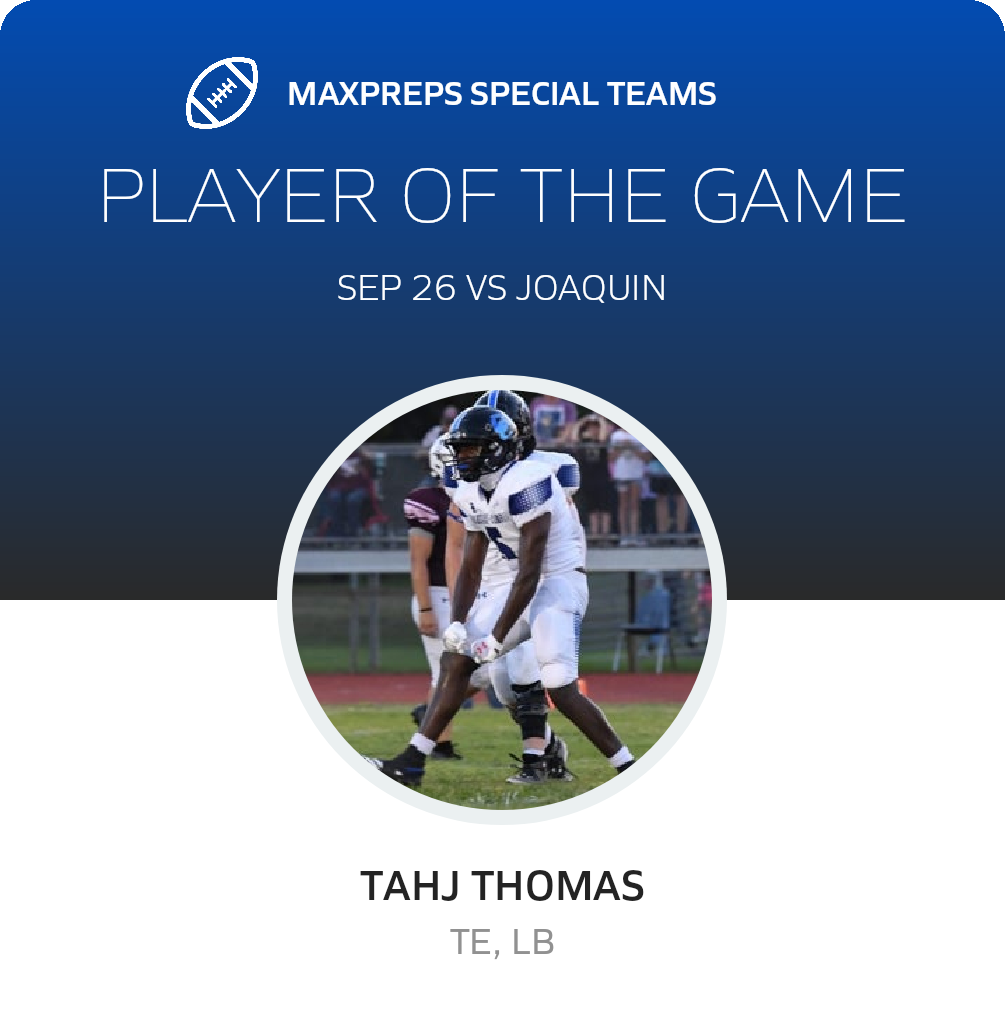 With the win, Joaquin improves its record to 3-2 on the season. The Rams travel to San Augustine (San Augustine, TX) to play the Wolves in a 2A-1 Region III District 11 battle on Friday, October 10. The Wolves go into the battle with a record of 3-2. San Augustine won 37-0 in their recent non-league battle against Huntington (Huntington, TX)