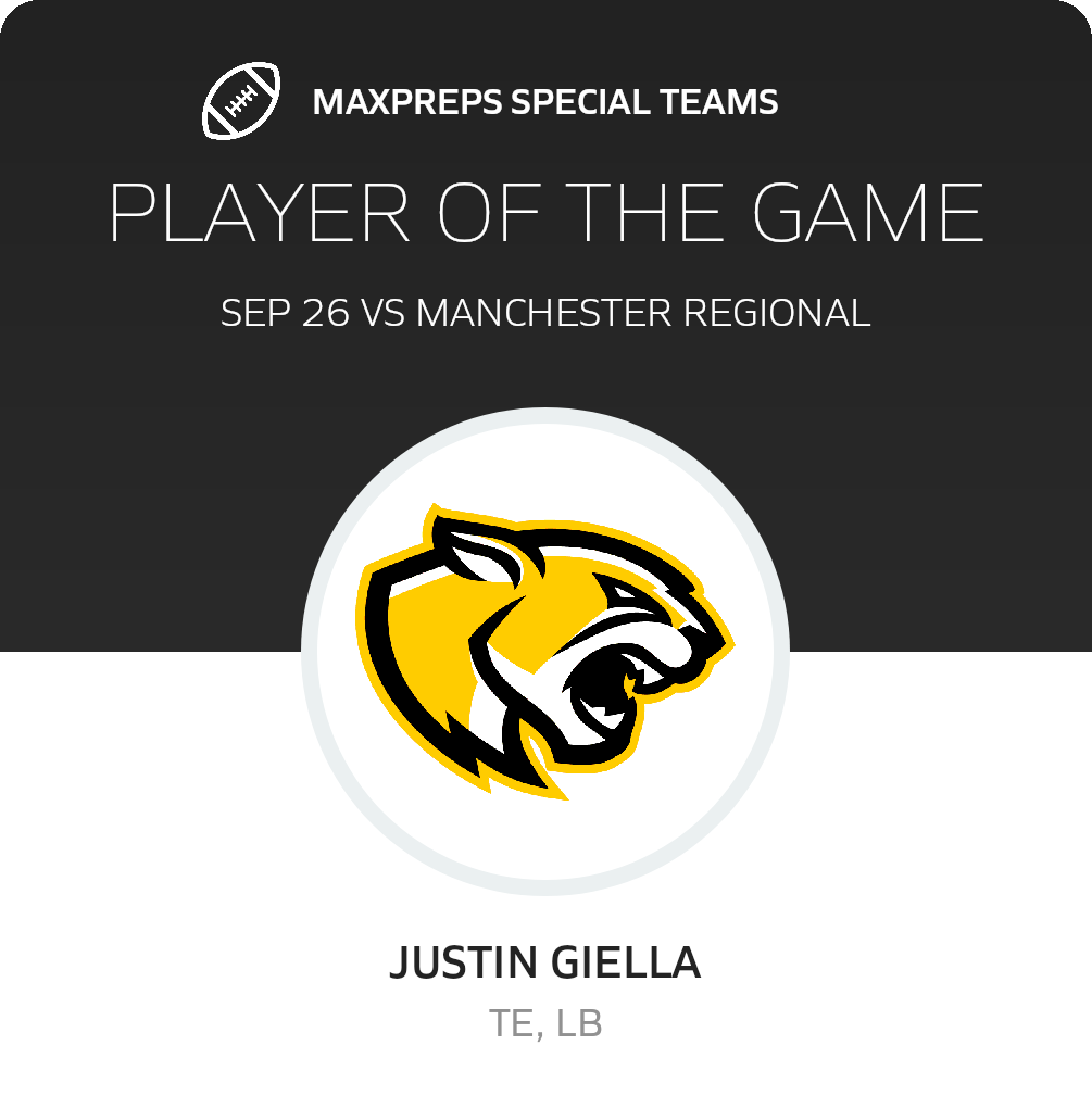 Coming up next, the Falcons battle the Glen Rock Panthers (Glen Rock, NJ) in a North Jersey - Liberty contest, on Friday, October 3. Manchester Regional will attempt to better on its 1-3 season record. The Panthers enter the contest with a 4-1 record after their 3-0 league loss to Rutherford (Rutherford, NJ).