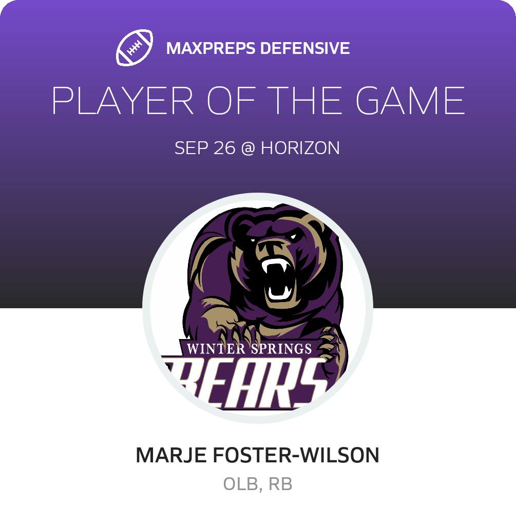 September 26, 2025: Winter Garden, FL 34787 The Winter Springs Bears football squad scored 20 points and limited the host Horizon Hawks to 14 in the Bears non-league triumph on Friday.