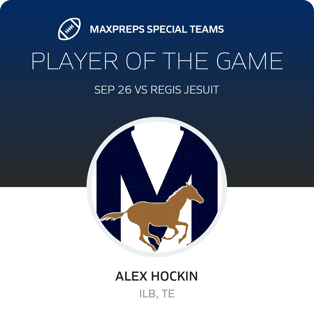 September 26, 2025: Denver, CO 80236 In Friday's non-league game, the Regis Jesuit Raiders (Aurora, CO) football team edged the host Mullen Mustangs (Denver, CO), by a tally of 21-14.