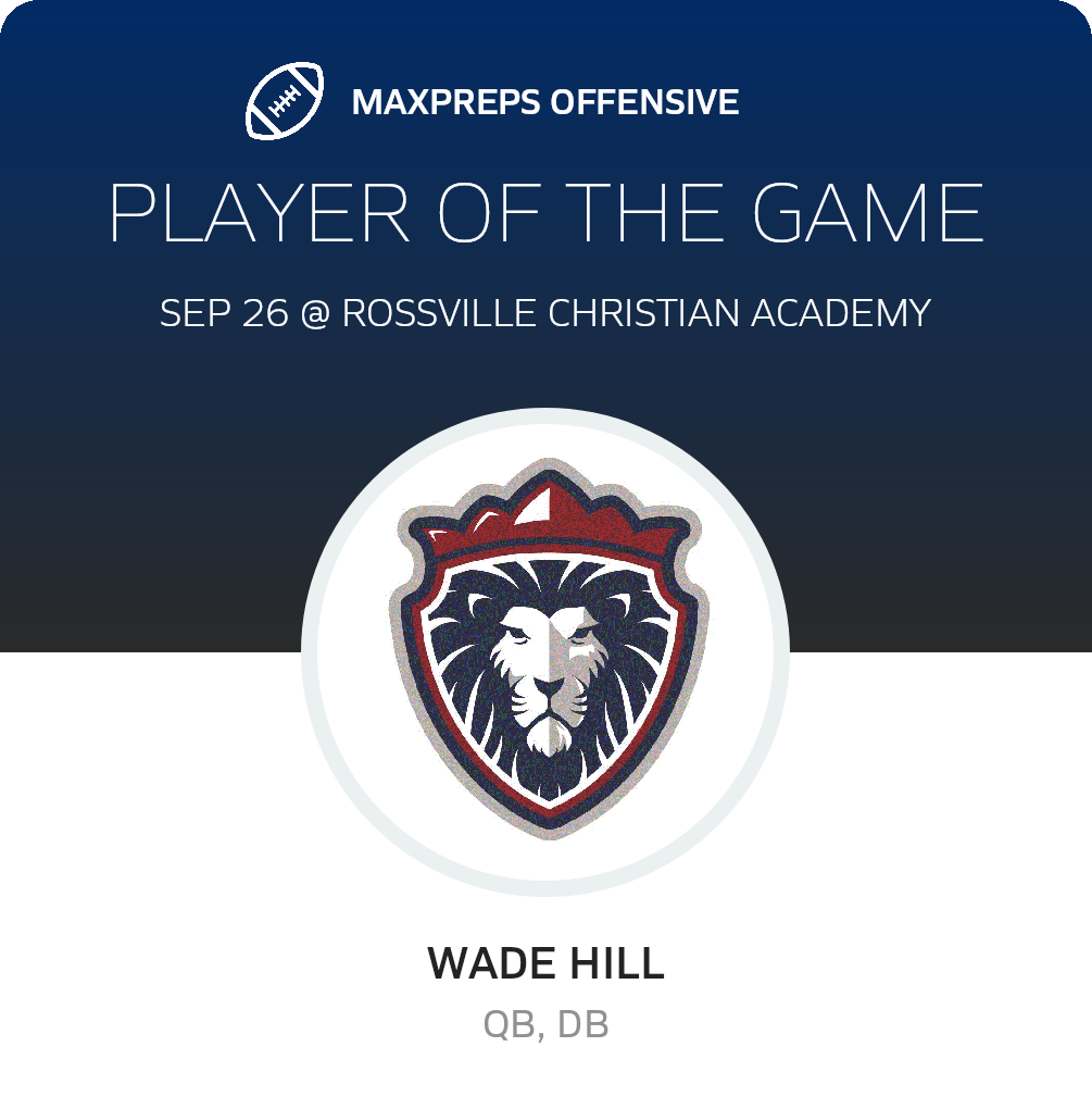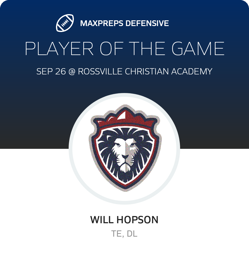 Congratulations to #21 Kalvin Moua (offensive) and #68 Beaux Watts (defensive) for being selected the Rossville Christian Academy Football Players of the Game.