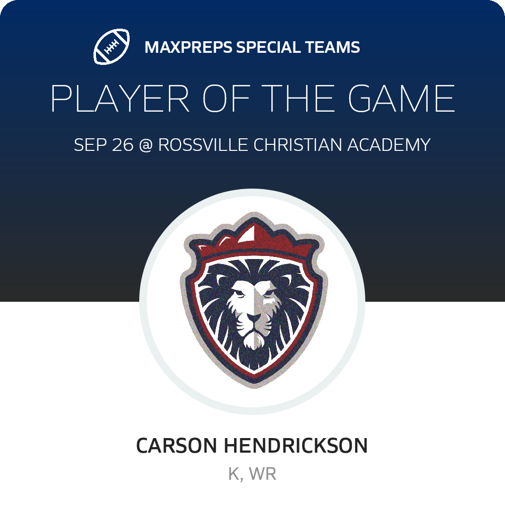 Congratulations to #13 Zane Hill (overall), #0 Wade Hill (offensive), #14 Will Hopson (defensive) and #7 Carson Hendrickson (special teams) for being selected the Regents Football Players of the Game.