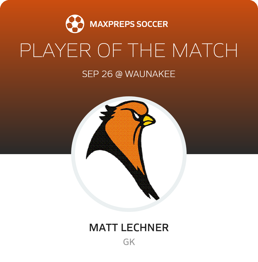 Congratulations to #77 Matt Lechner for being selected the North Fond du Lac Soccer Player of the Match.