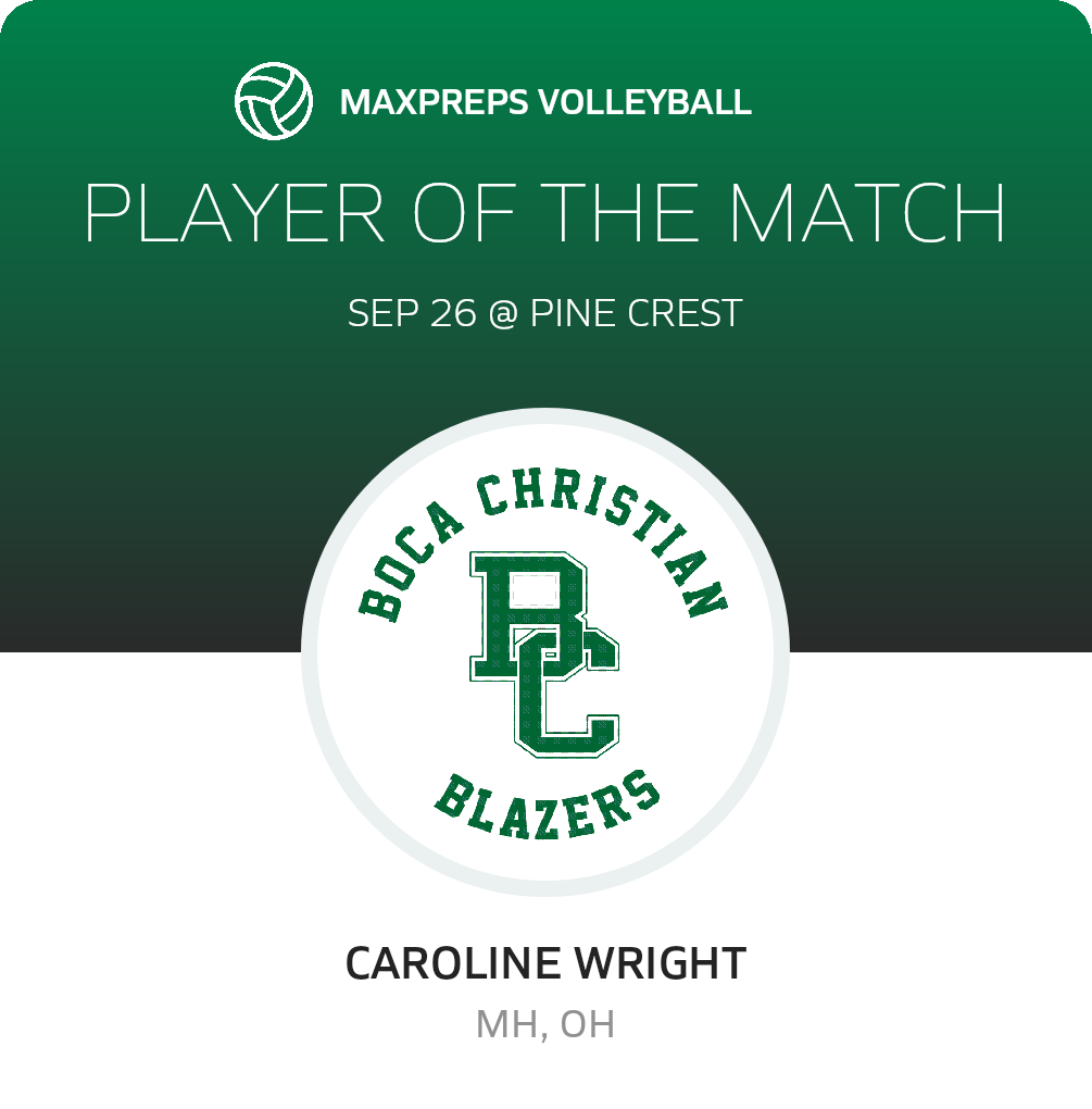 With the loss, Boca Raton Christian drops to 8-9 on the campaign. The Blazers host Saint Andrew's (Boca Raton, FL) to clash with the Scots in a non-league bout on Tuesday, September 30. The Scots come into the bout with a record of 11-5.