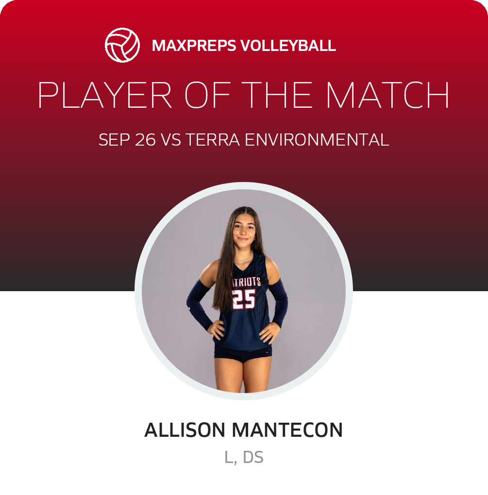 September 26, 2025: Miami, FL 33165 The Florida Christian Patriots (Miami, FL) volleyball knocked off the visiting TERRA Environmental (Miami, FL), 2-0 in Friday's non-league match.