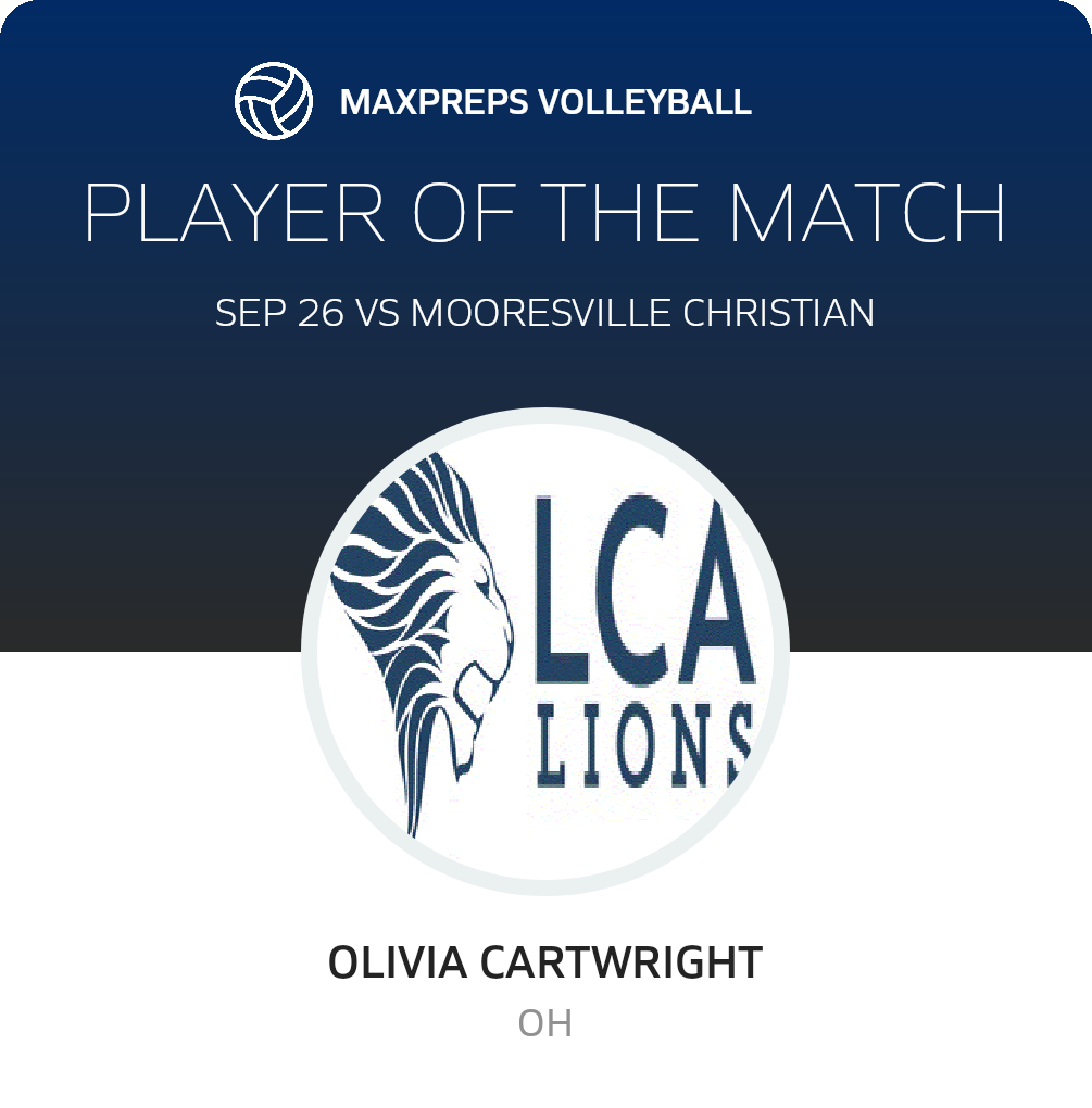 September 26, 2025: Bloomington, IN 47403 The Lighthouse Christian Academy Lions volleyball squad scored 3 points and limited the visiting Mooresville Christian Eagles to 0 in the Lions non-league victory on Friday.