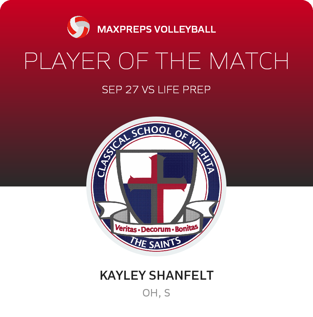The Classical (Wichita, KS) varsity volleyball team won Tuesday's home non-conference match against Life Prep (Park City, KS) by a score of 2-0.