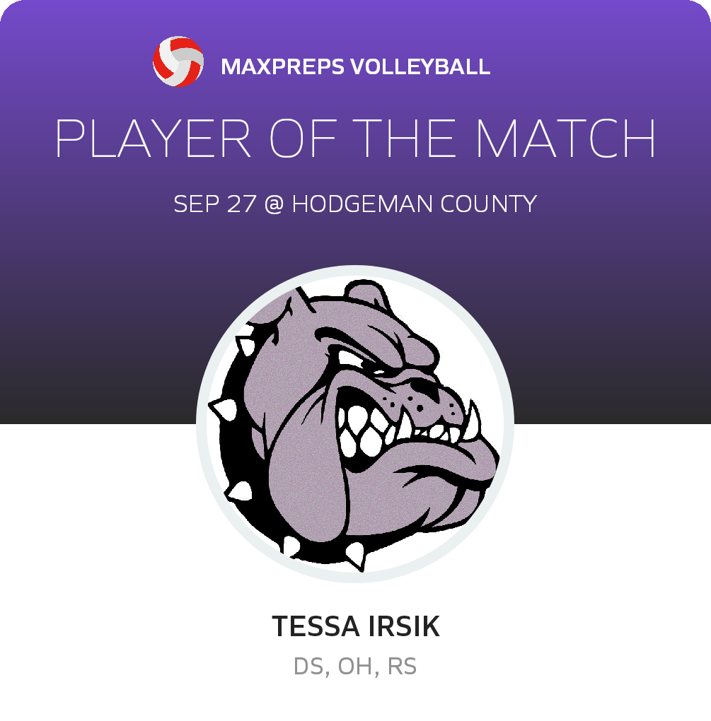 Congratulations to #11 Tessa Irsik for being selected the Ingalls Volleyball Player of the Match.