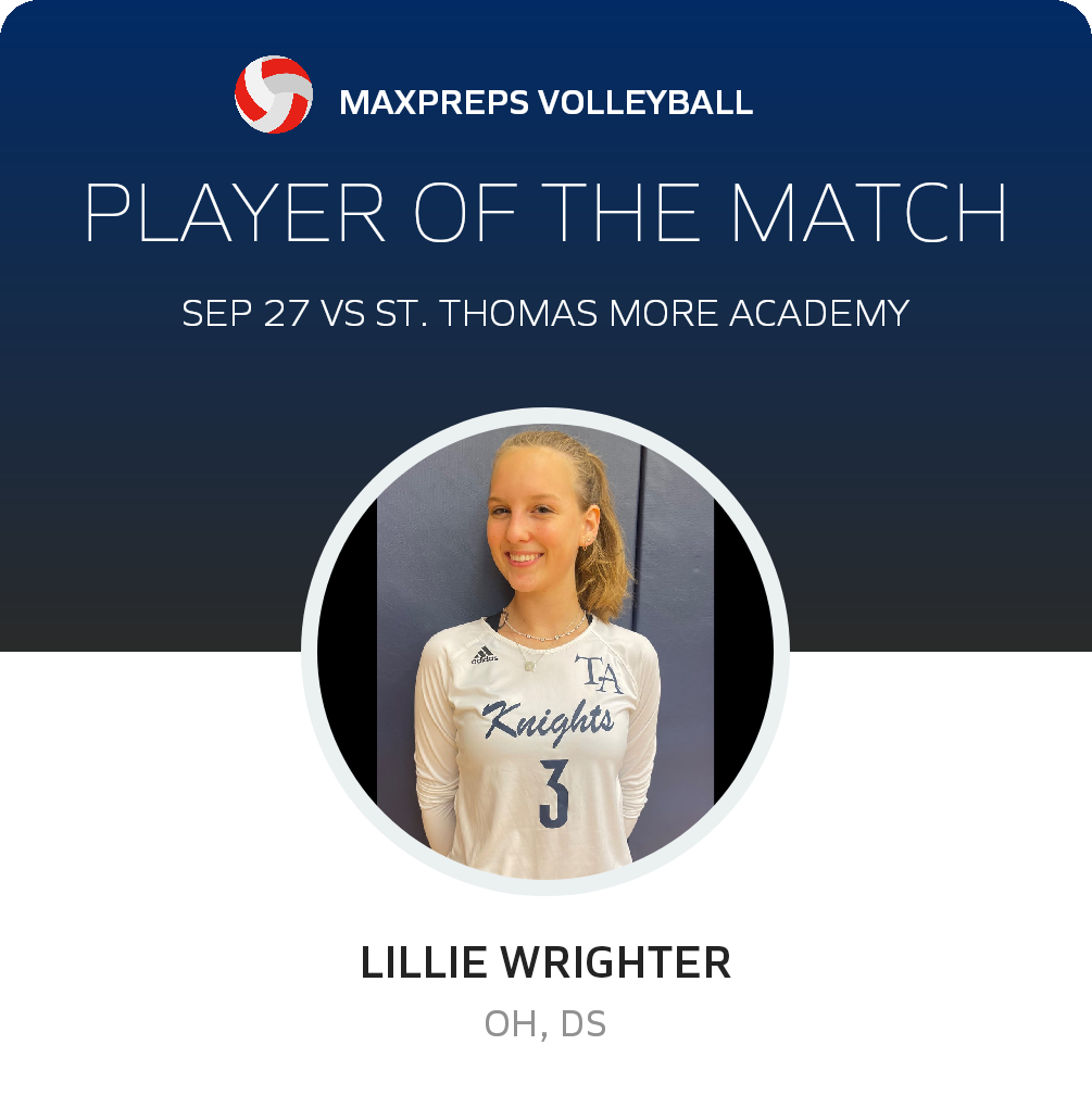 Next, the Chancellors meet the Varsity Opponent (, ) in a non-league challenge, on Wednesday, September 28. St. Thomas More Academy will attempt to move on its 4-10 season record. The enter the challenge with a 46-248 record after their 3-1 non-league loss to Calvary Christian (Indianapolis, IN).
