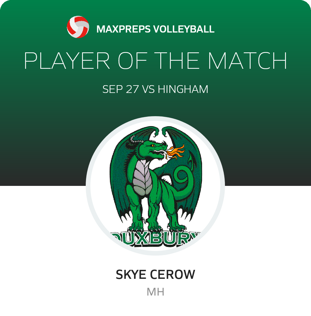 September 27, 2023: Duxbury, MA 02332 The Duxbury Dragons topped the visiting Hingham Harbormen volleyball team by a score of 3-0 in Wednesday's league test.