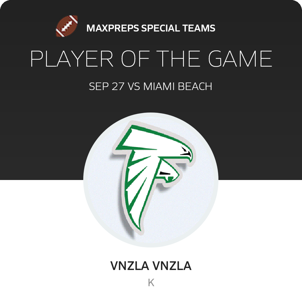 Coming up next, the Falcons confront the Cypress Bay Lightning (Weston, FL) in a non-league match, on Friday, October 4. Flanagan will attempt to upgrade on its 1-3 season record. The Lightning come into the match with a 2-2 record after their 28-22 league loss to Goleman (Miami, FL).