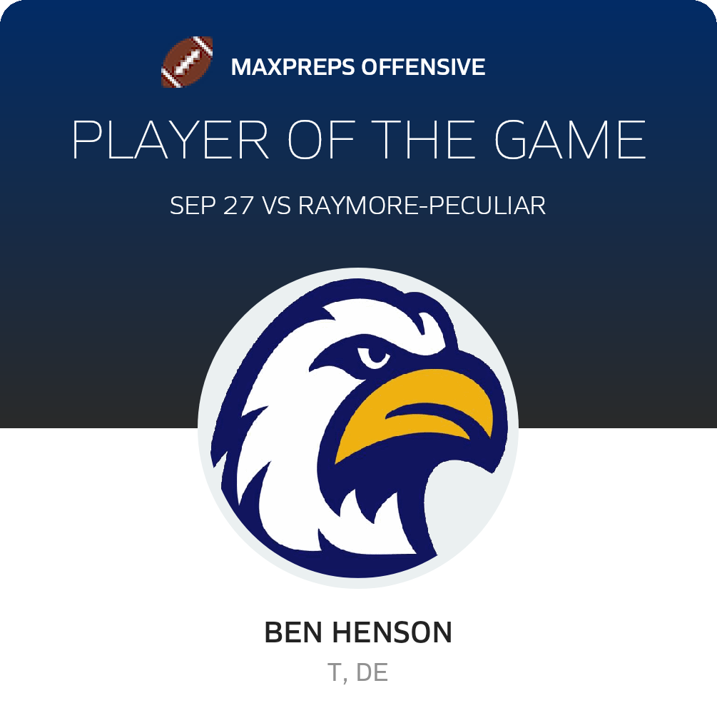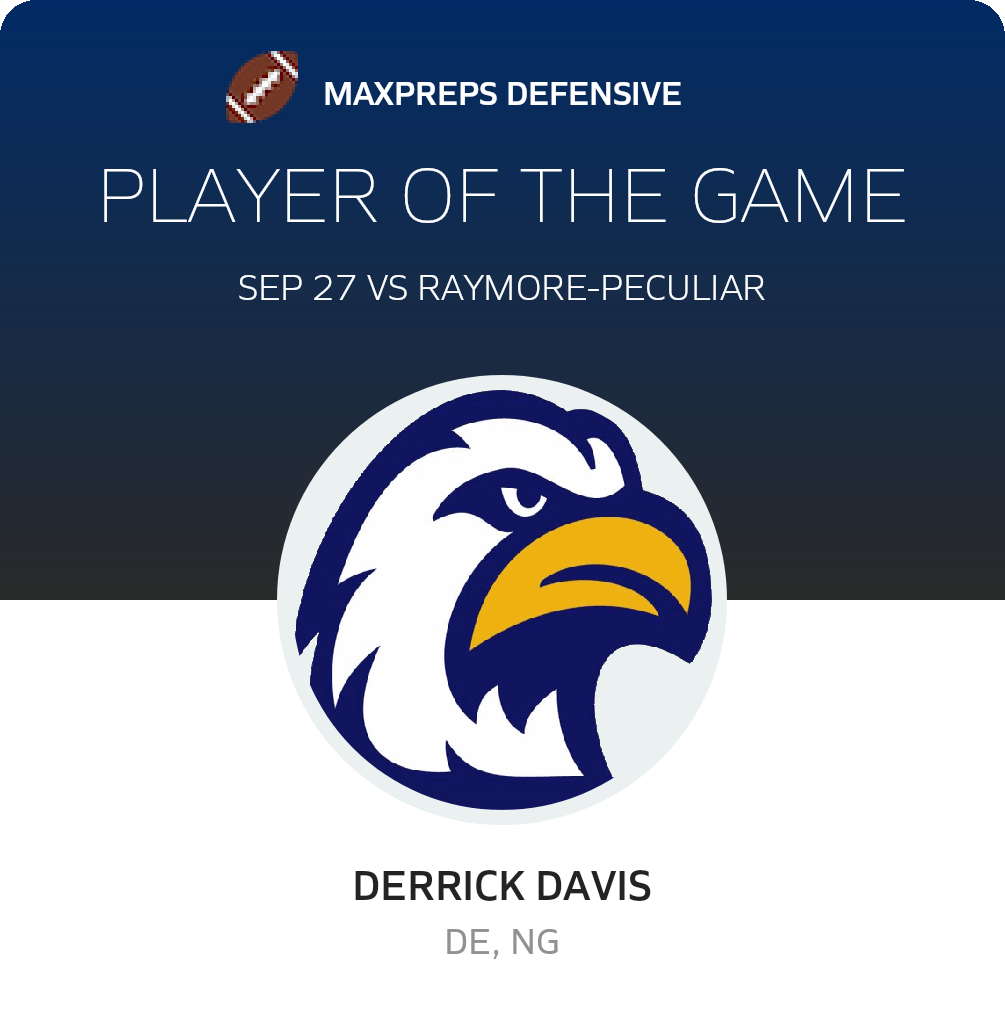 The Eagles now hold a 3-2 record. They take the field next when they travel to Staley for a non-league test on Friday, October 4. Liberty North will meet a Falcons squad coming off a 43-14 league loss to Blue Springs South (Blue Springs, MO). The Falcons record now stands at 1-4.