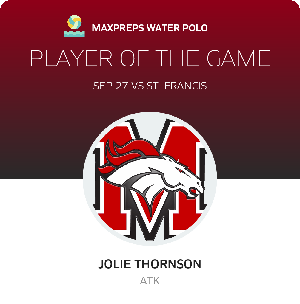 Congratulations to #3 Jolie Thornson for being selected the Monte Vista Girls Water Polo Player of the Game.