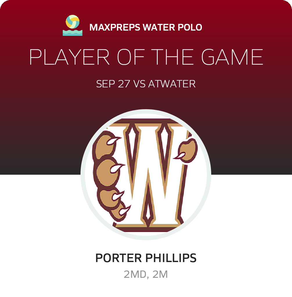 Congratulations to #9 Porter Phillips for being selected the Whitney Water Polo Player of the Game.