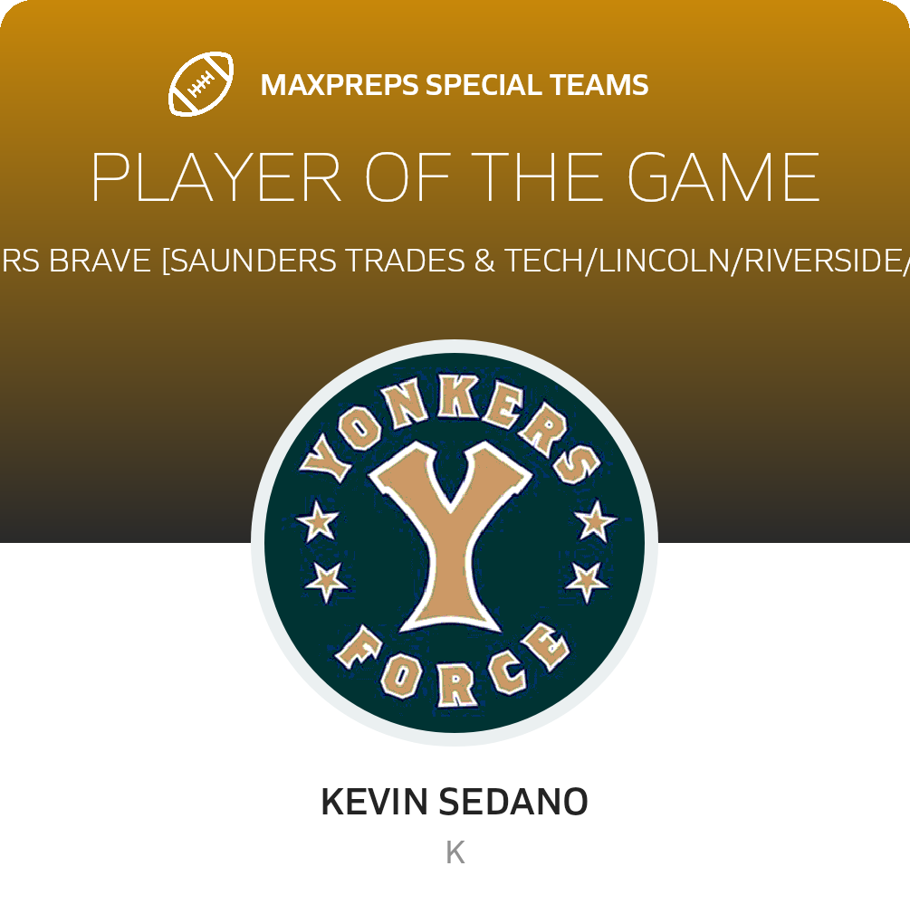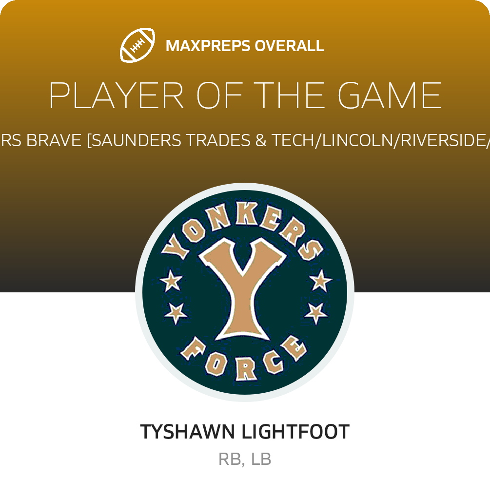 New York High School Football - Yonkers Brave [Saunders Trades & Tech/Lincoln/Riverside/Palisade Prep] toppled by Yonkers Force [Gorton/Roosevelt/Yonkers Montessori Academy/Yonkers]