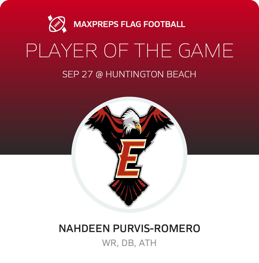 Congratulations to #17 NAHDEEN PURVIS-ROMERO for being selected the Etiwanda Girls Flag Football Player of the Game.