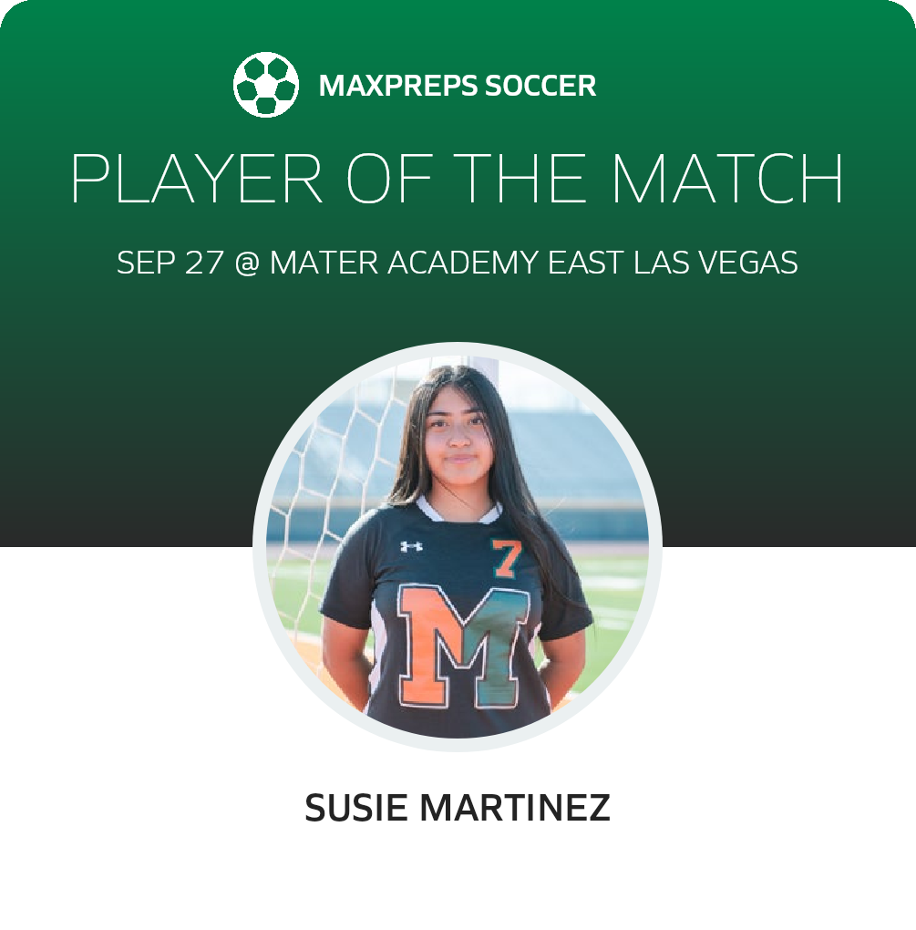 Congratulations to #7 Susie Martinez for being selected the Mojave Girls Soccer Player of the Match.