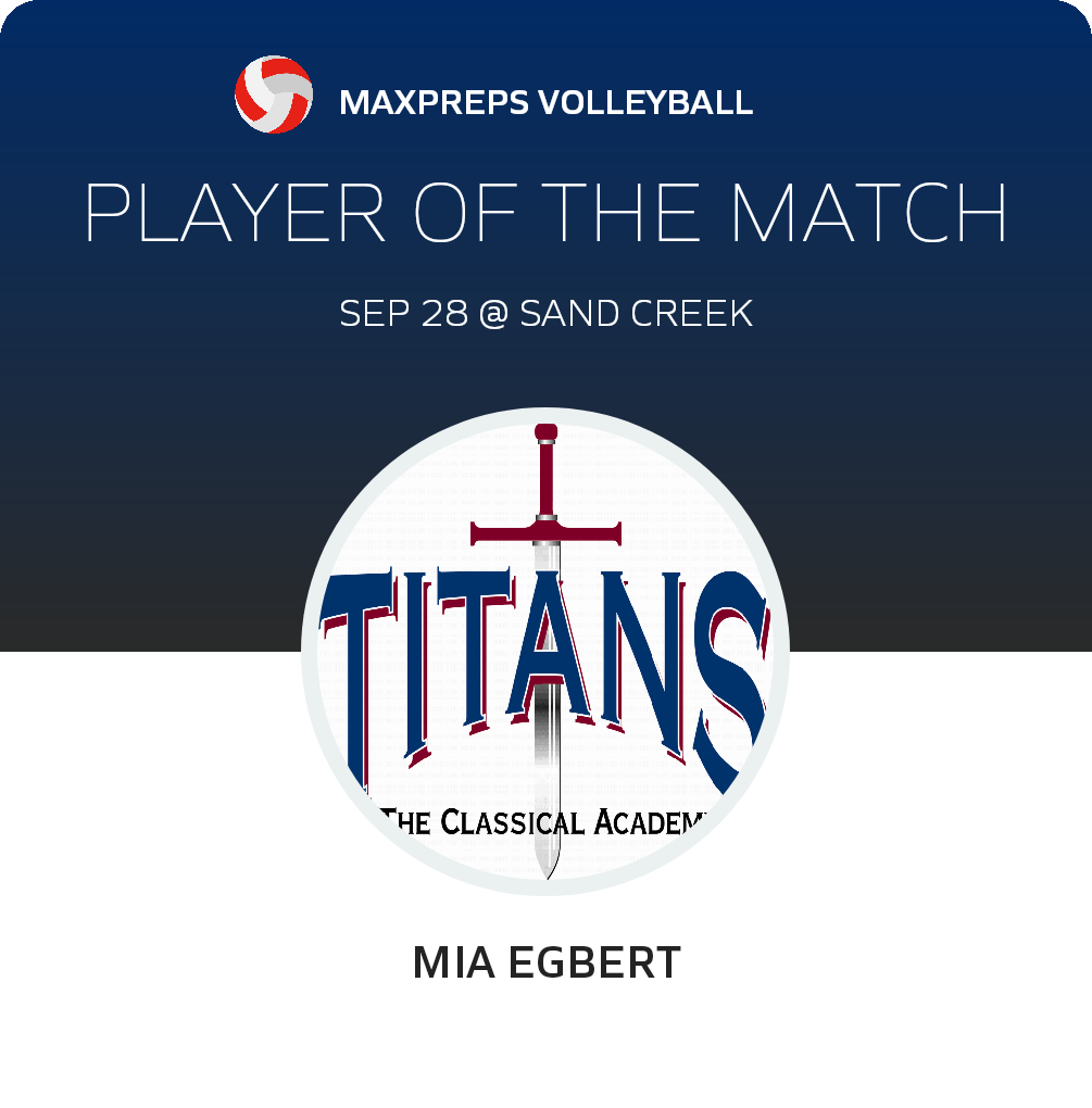 Congratulations to #7 Mia Egbert for being selected the The Classical Academy Freshman Volleyball Player of the Match.