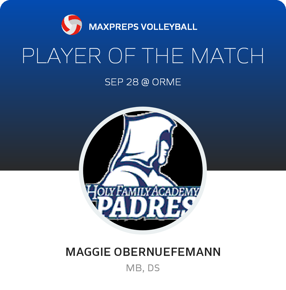 Congratulations to #4 Maggie Obernuefemann for being selected the Holy Family Academy Volleyball Player of the Match.