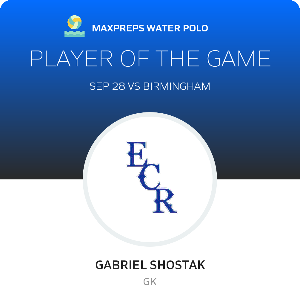 Congratulations to #1 Gabriel Shostak for being selected the El Camino Real Water Polo Player of the Game.