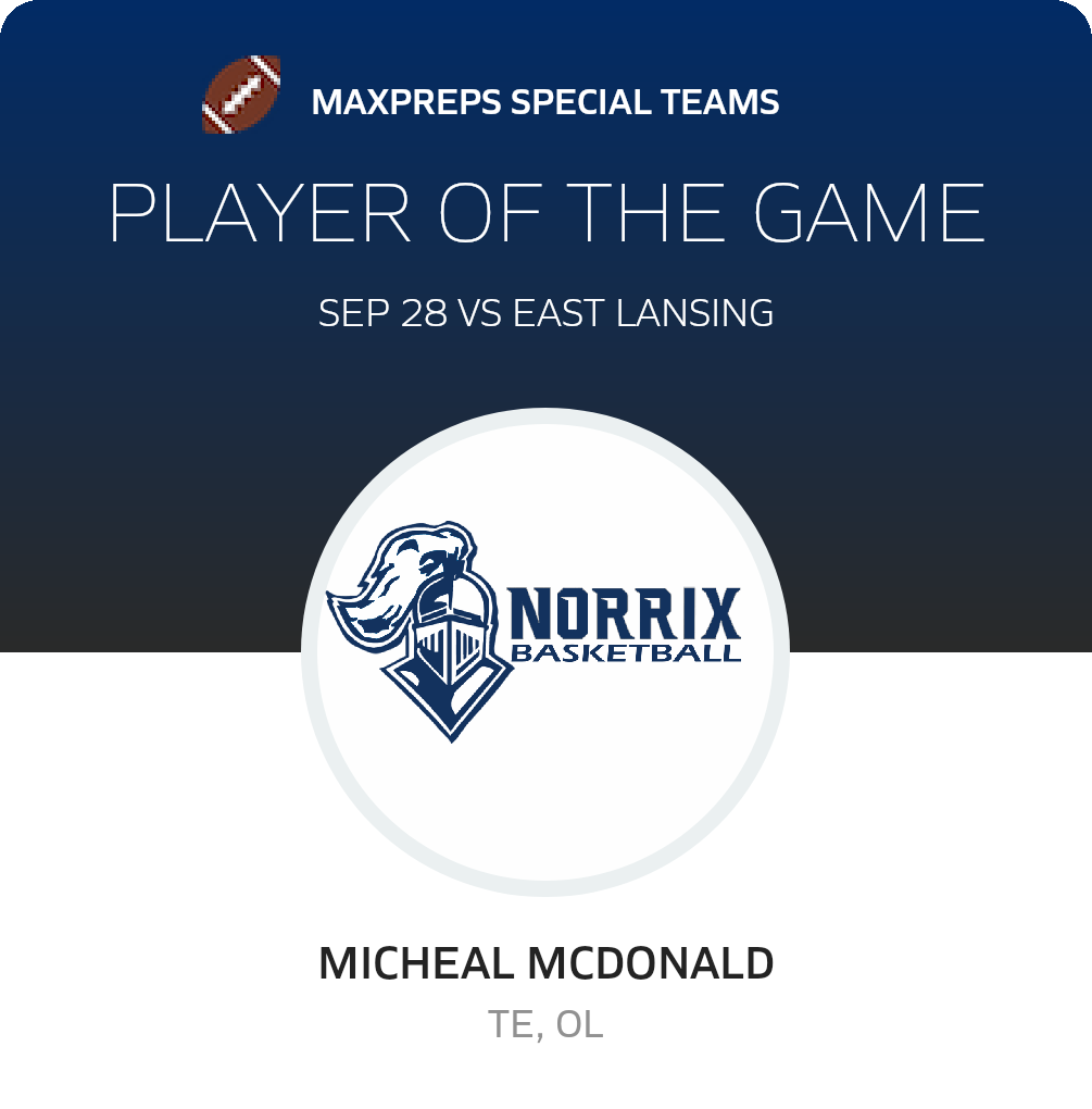 September 28, 2023: Kalamazoo, MI 49001 In Thursday's non-league game, the Norrix Knights (Kalamazoo, MI) football team knocked off the visiting East Lansing Trojans (East Lansing, MI), by a score of 28-14.